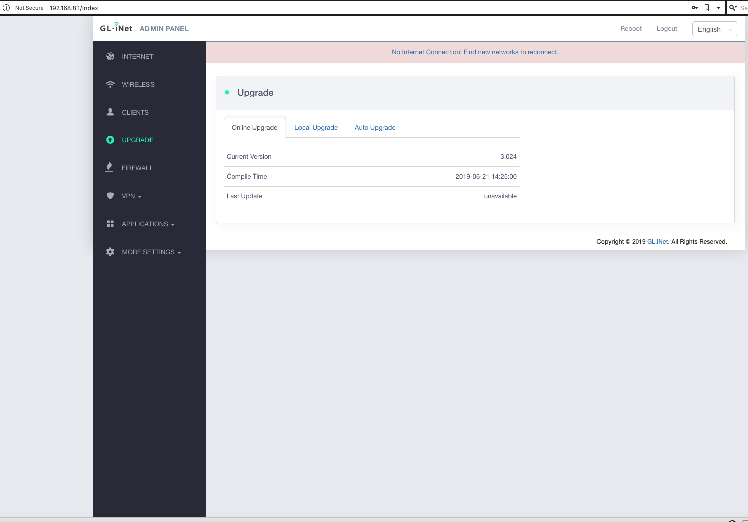 Als erstes solltest Du die aktuelle Freifunk München Firmware für den GL-MT300N herunterladen. Die Versionsnummer steht auf der Rückseite des Geräts. Am besten nimmst Du den Update-Kanal „stable“. Die Router von GL.iNet werden von Werk ab mit OpenWRT geliefert, deshalb gibt es nur Upgrade-Firmware.