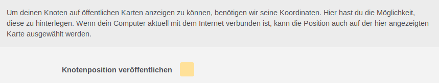 Die Speicherung der Geo-Koordinaten erfolgt direkt auf dem Knoten selbst, Diese können auch später über die WEB-GUI bzw. mit Hilfe einer SSH-Verbindung zur Administration jederzeit geändert oder gelöscht werden.
